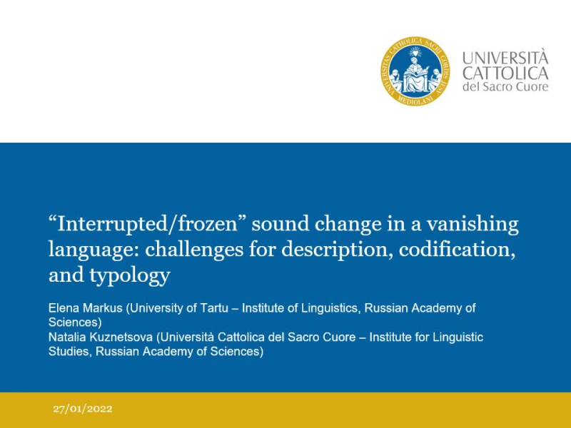 “Frozen” sound change in a vanishing language: challenges for description, codification, and typology